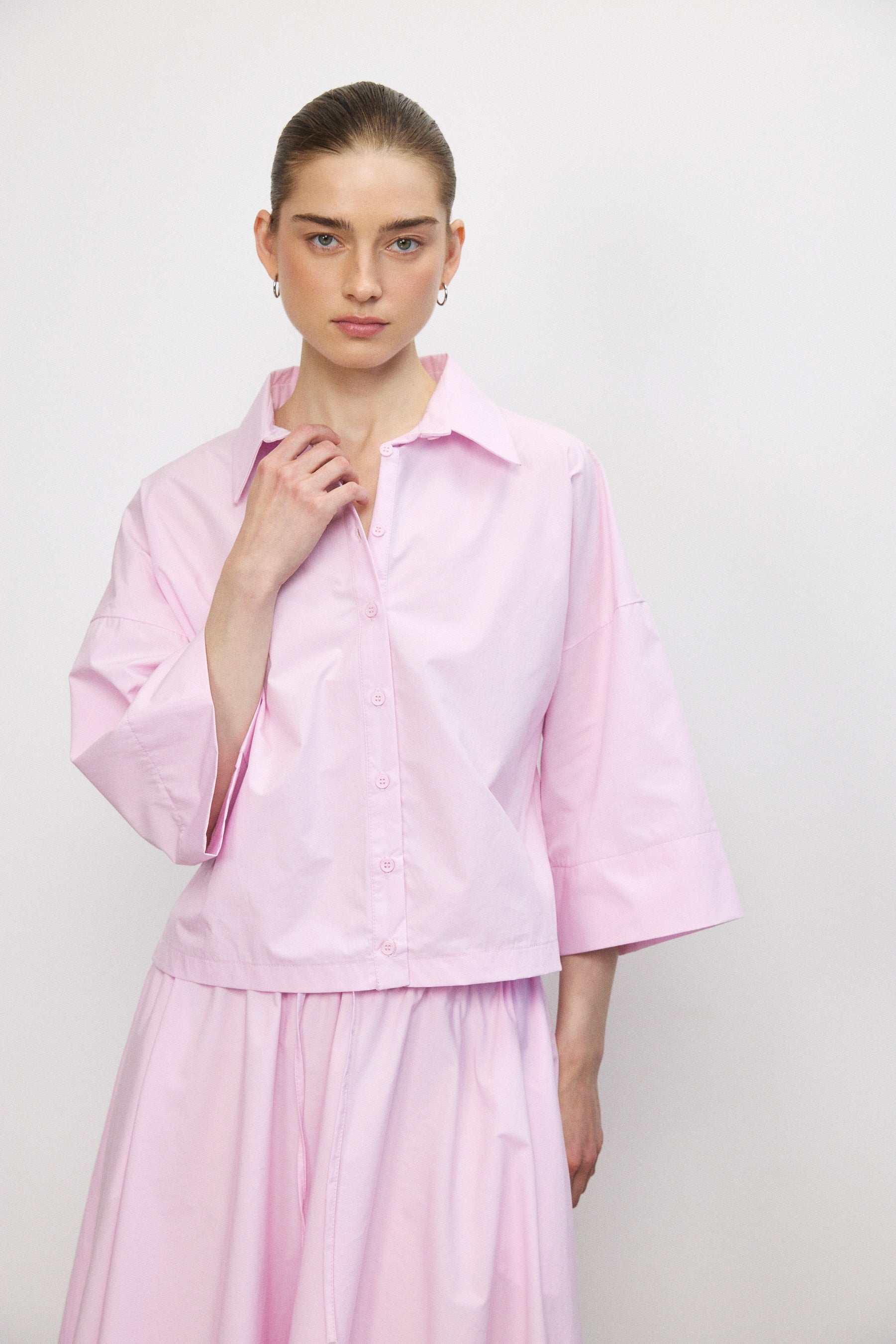 חולצה מכופתרת עלמה ורודה