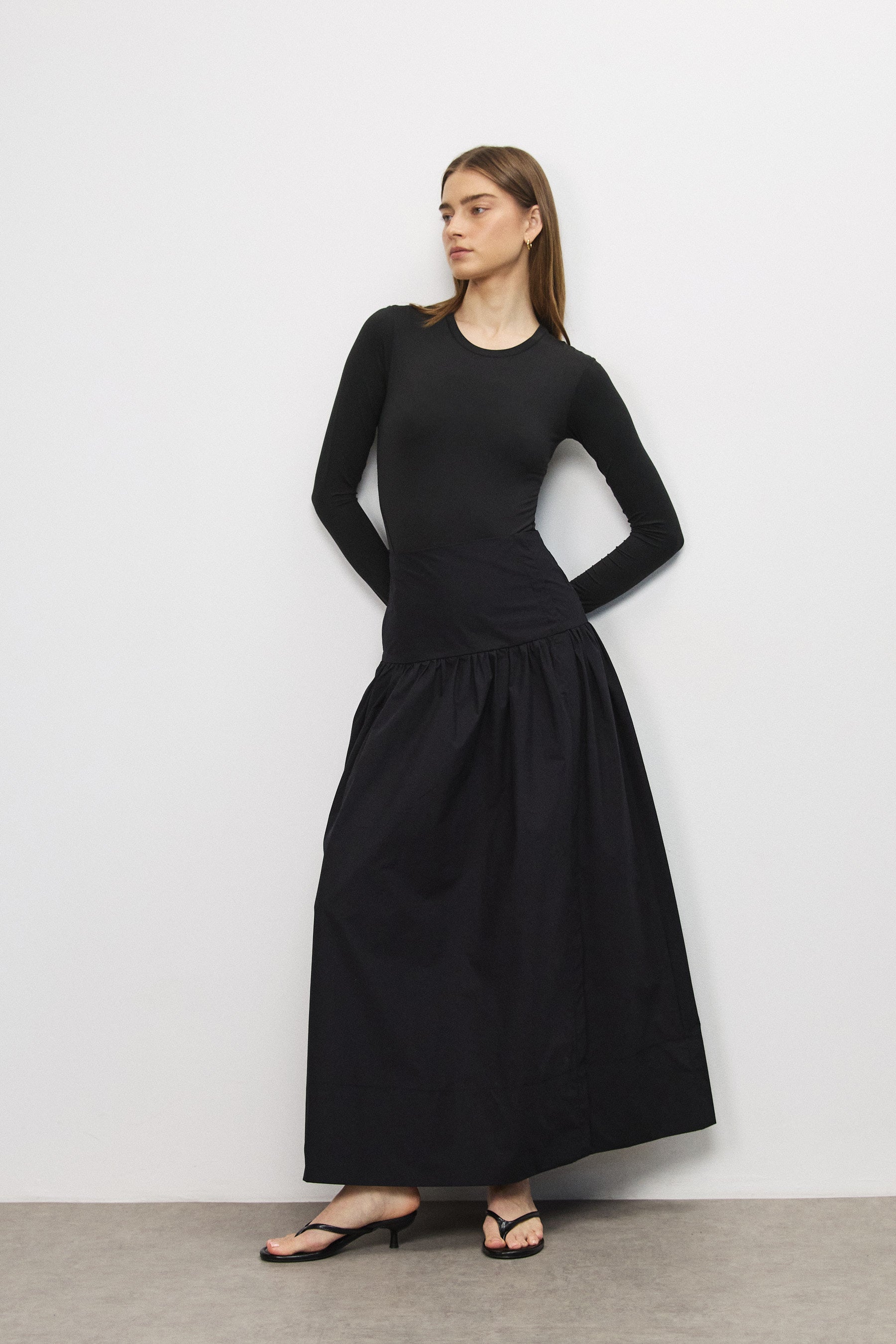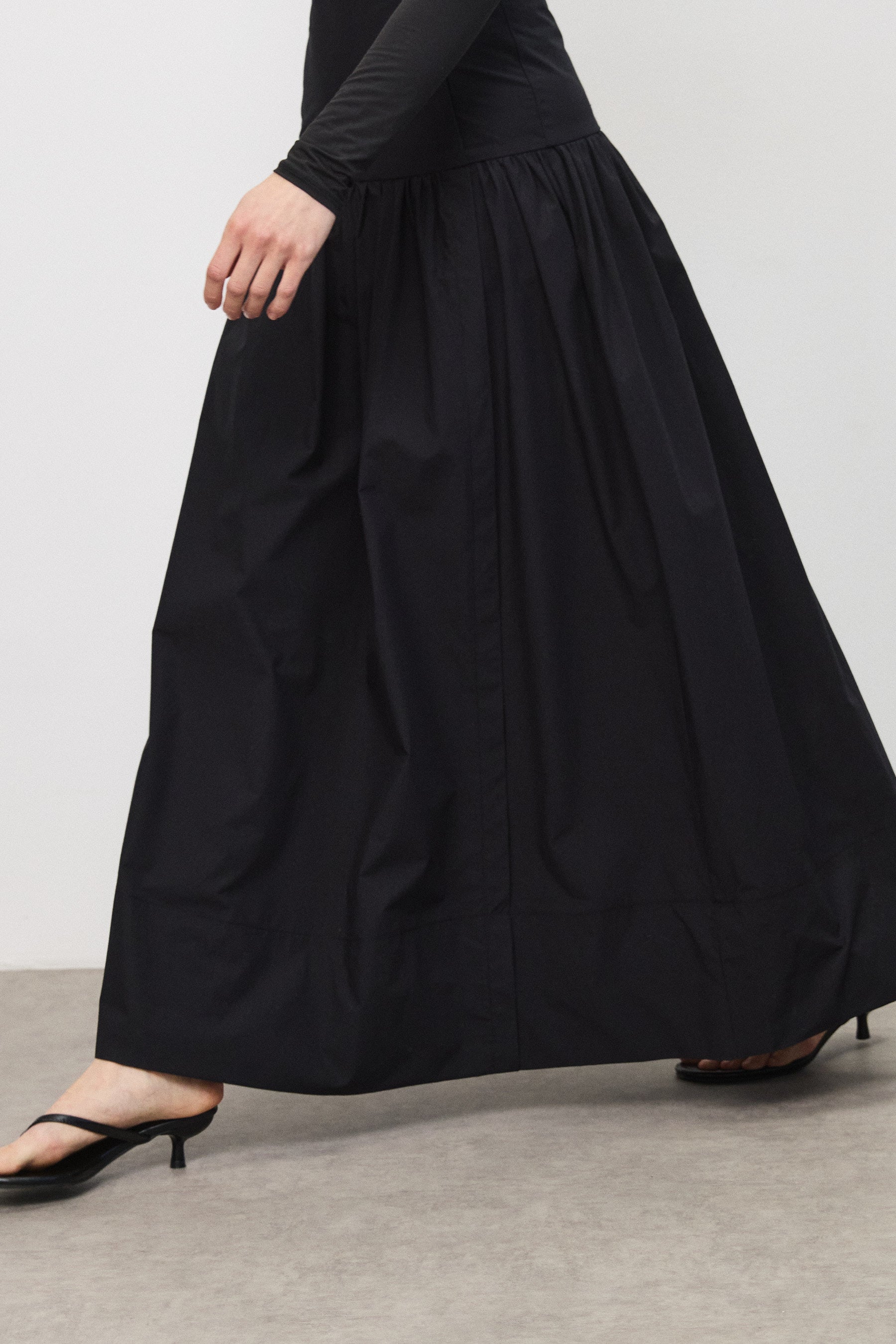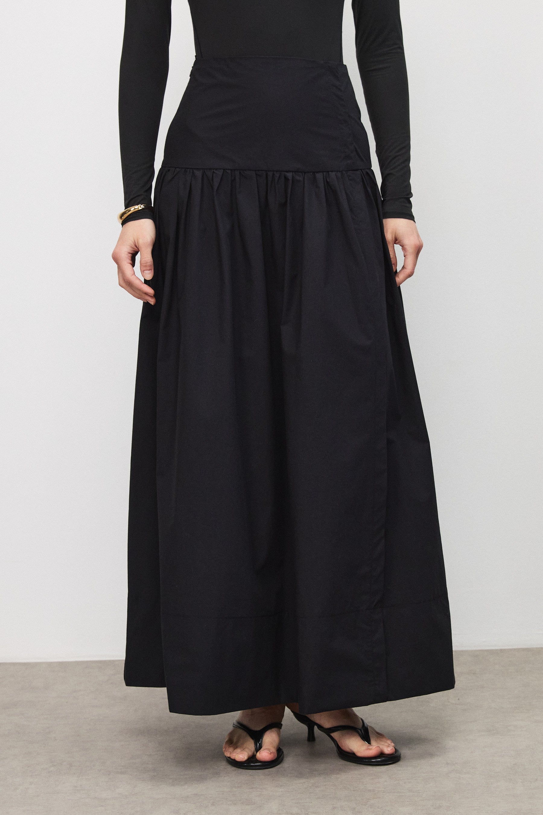 חצאית מקסי עשויה 100% כותנה איכותית, בגזרה נצמדת בחלק העליון המדגישה קו נקי ומאוזן. כוללת רוכסן צידי נסתר לשמירה על מראה מוקפד ואחיד.