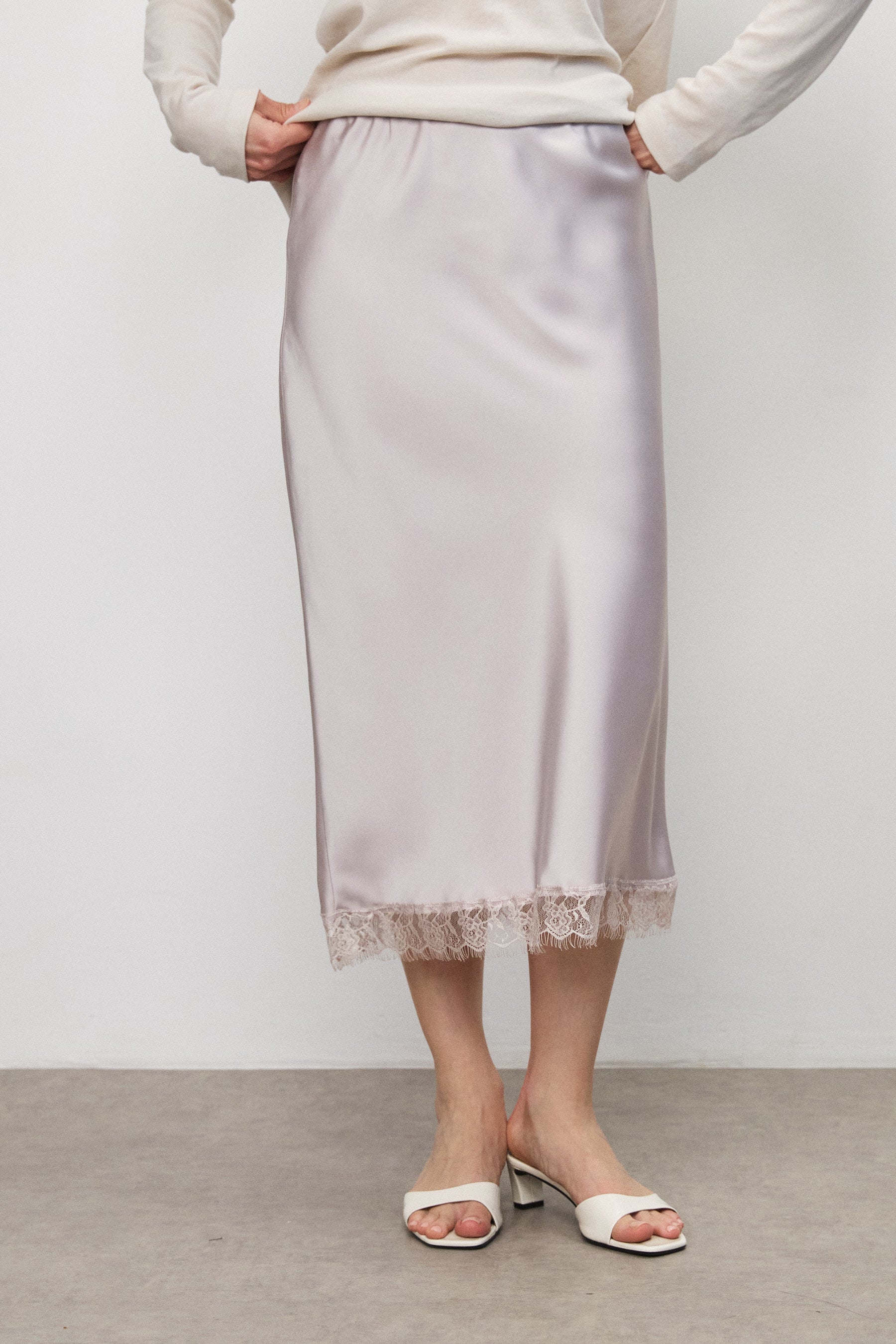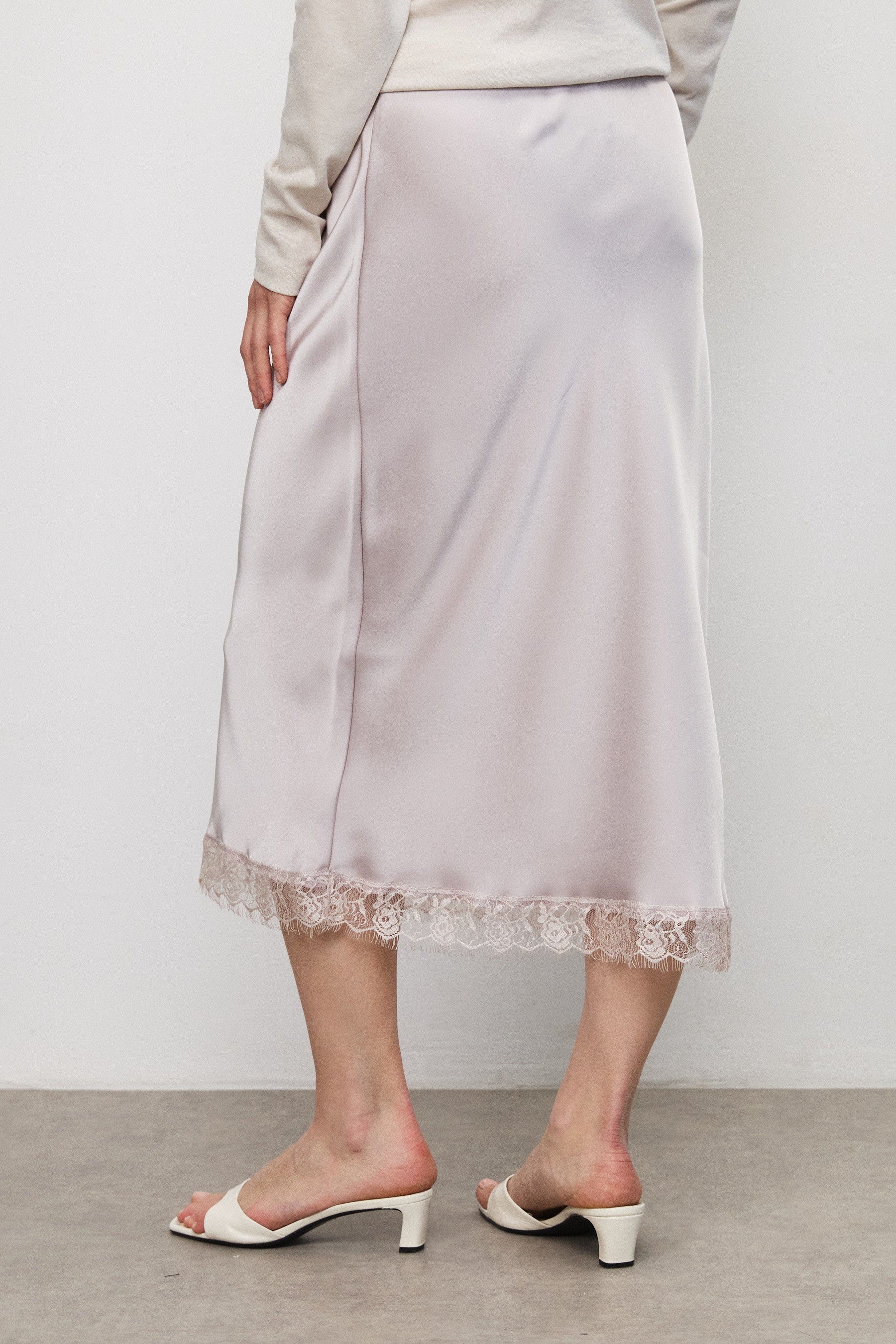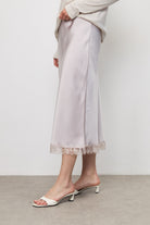 חצאית מידי סאטן תחרה סגול בהיר