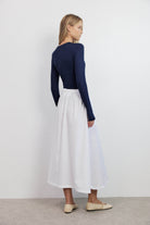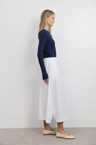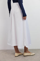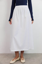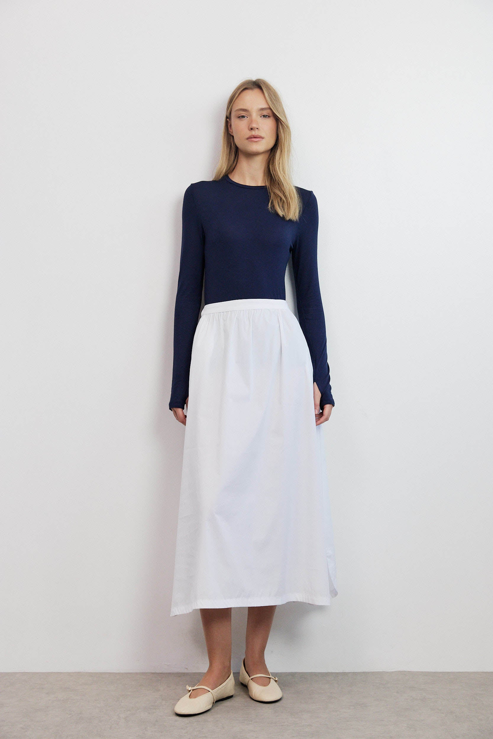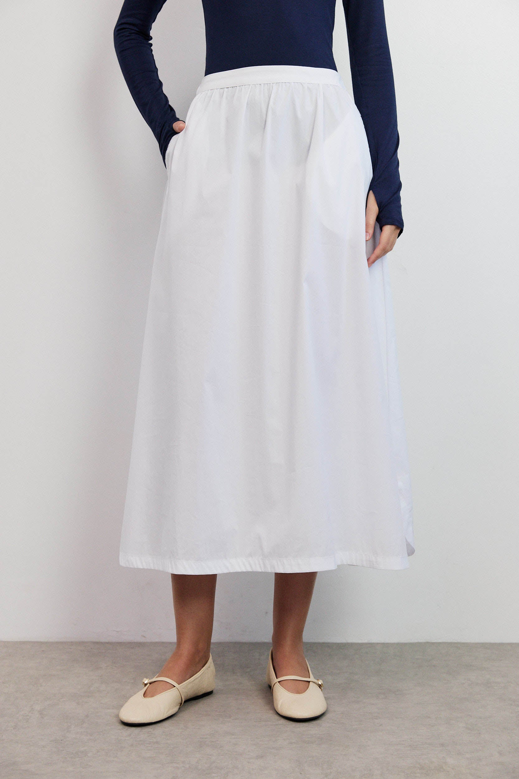 החצאית עשויה מבד חלק ונעים, בצבע לבן טהור שמשתלב בקלות בכל מלתחה.