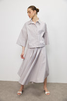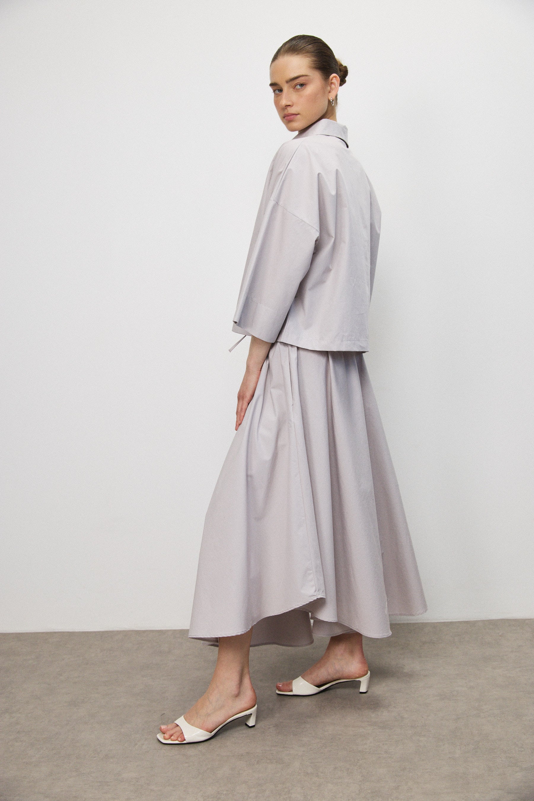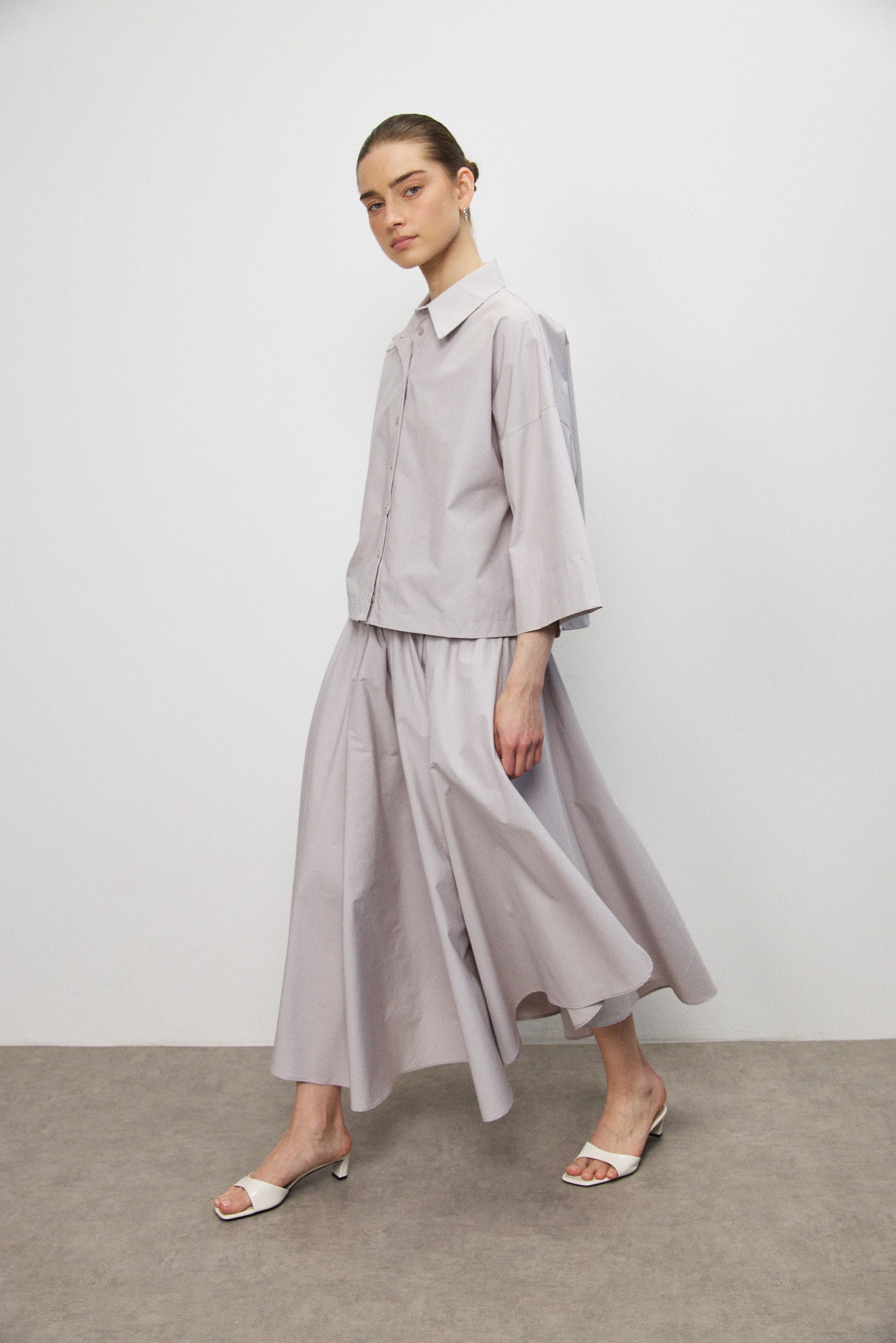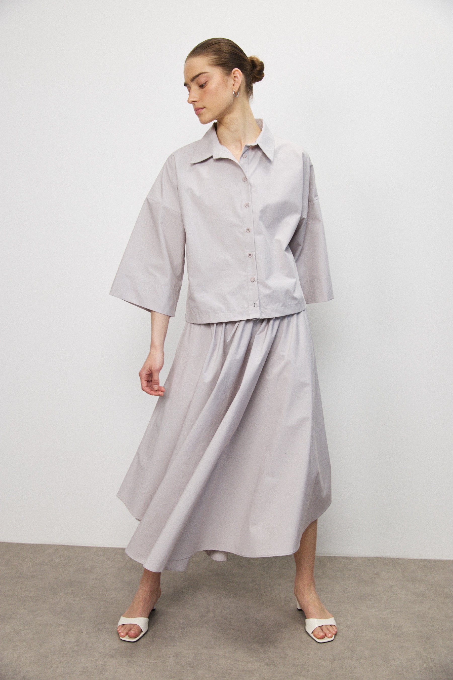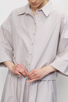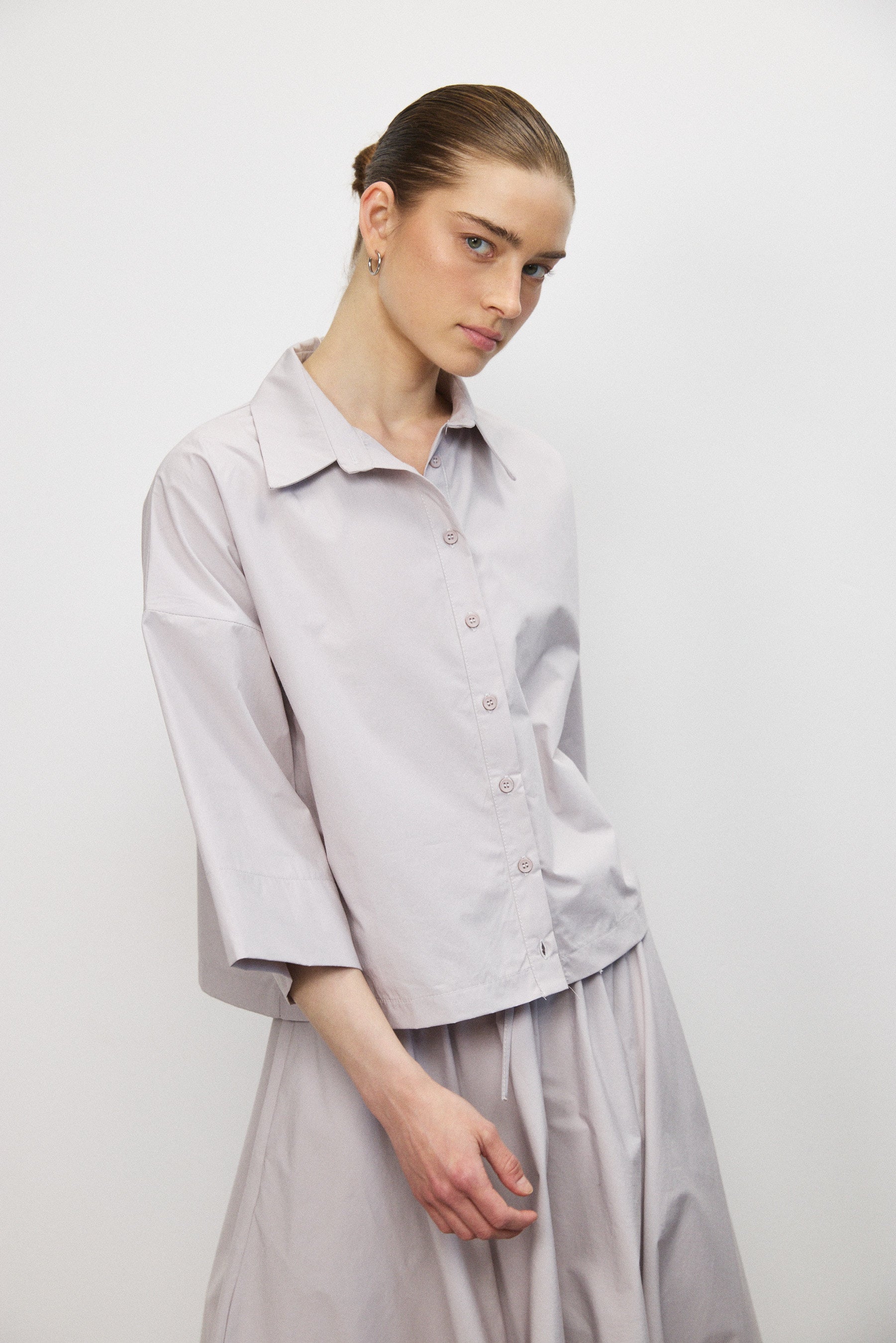 חולצה מכופתרת עשויה 100% כותנה איכותית, במראה קראנצ’י עדין שיוצר טקסטורה טבעית על הגוף. שרוולי שלושה רבעים וצווארון מדויק משלימים קו מוקפד ומאוזן. משתלבת באופן טבעי עם חצאית עלמה ליצירת סט שלם והרמוני.