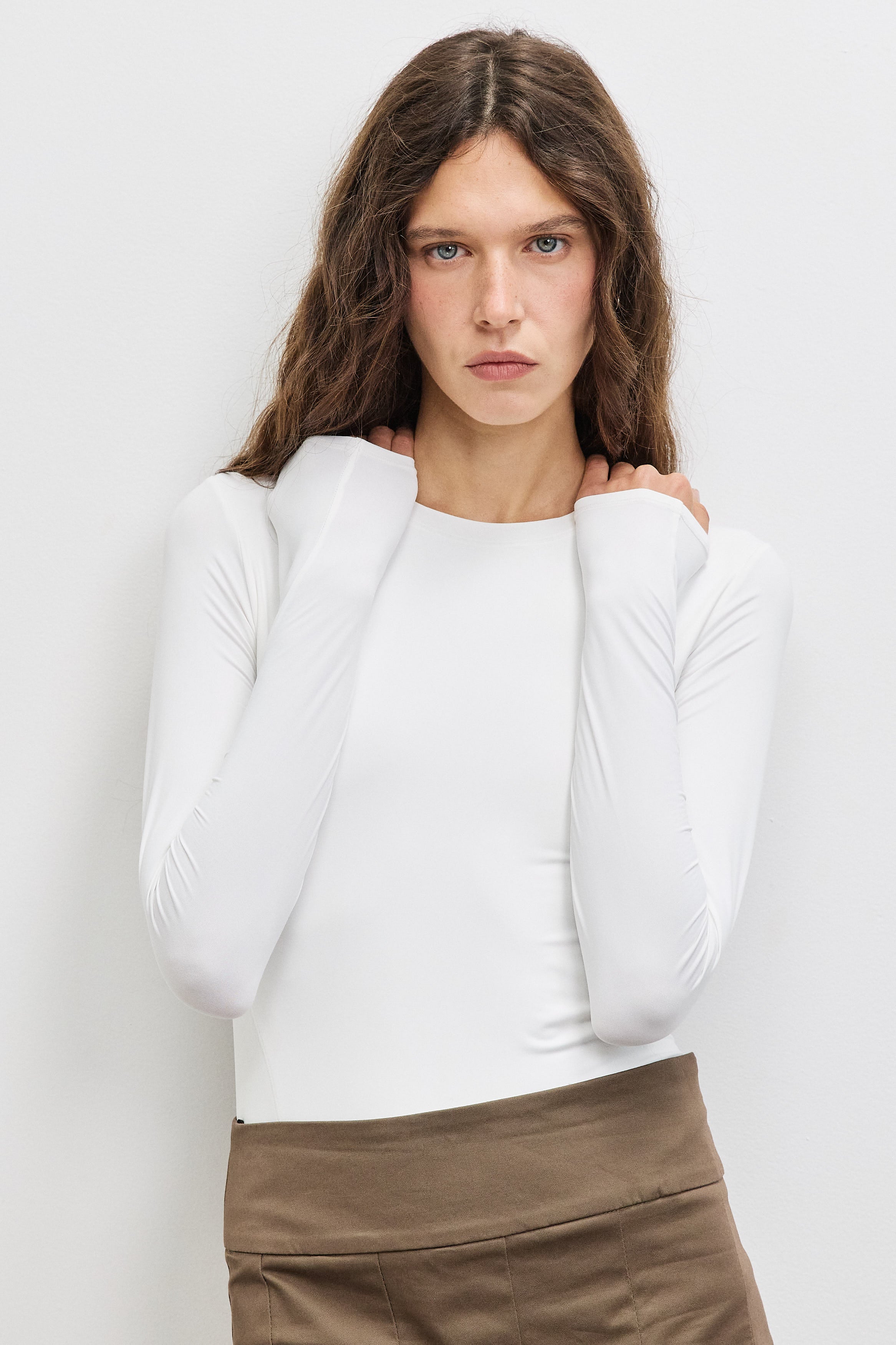 בגד גוף צמוד עשוי בד חמאתי ורך במיוחד, בעל תחושה יוקרתית על הגוף. כולל תיפורים רכים ולא מורגשים באזור המותניים, היוצרים חיתוך מחמיא וישיבה מדויקת. מצויד בתיקתקים לנוחות לבישה מקסימלית. פריט ייחודי ומוקפד לשילוב יומיומי מדויק.
