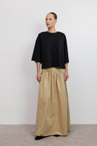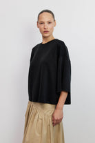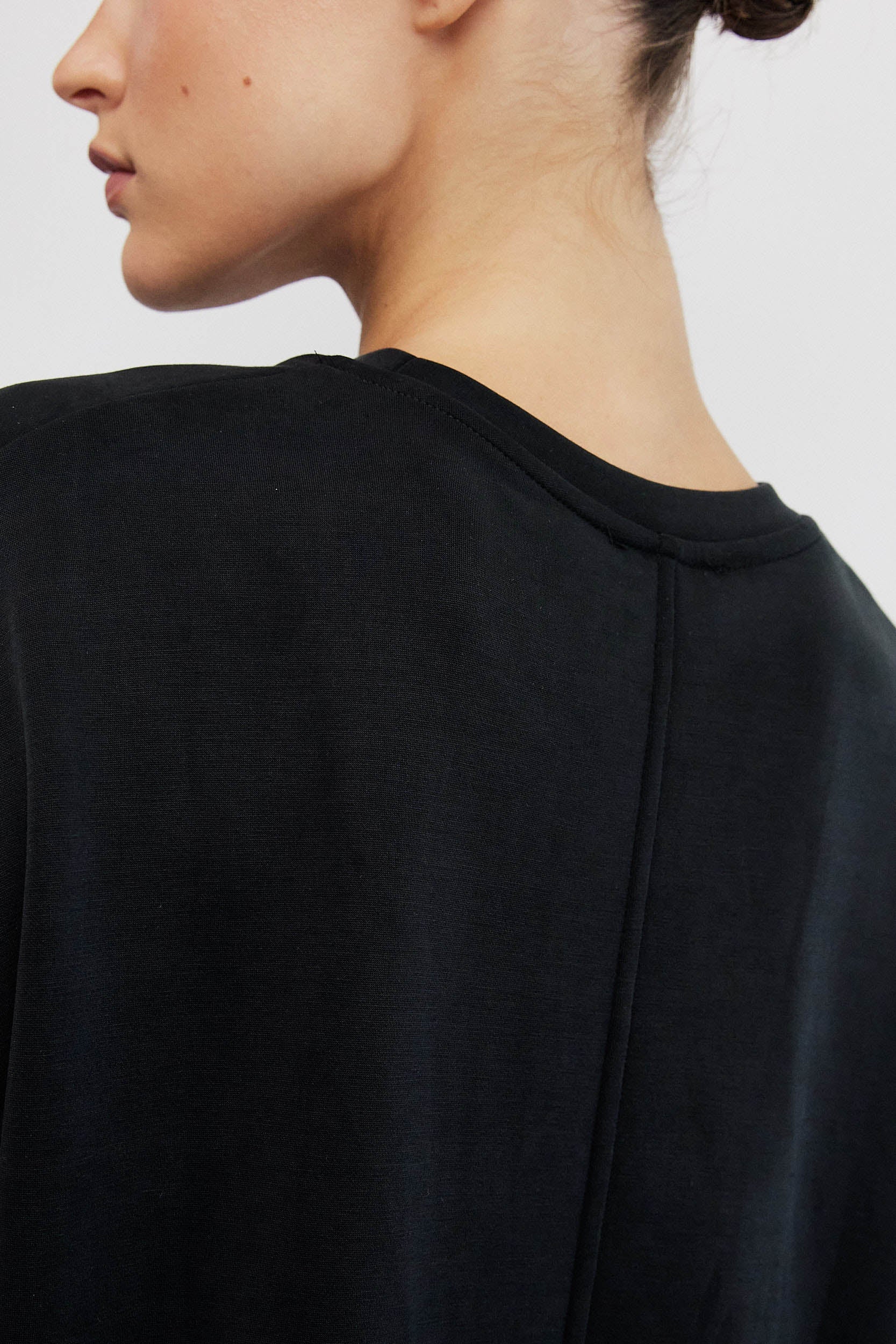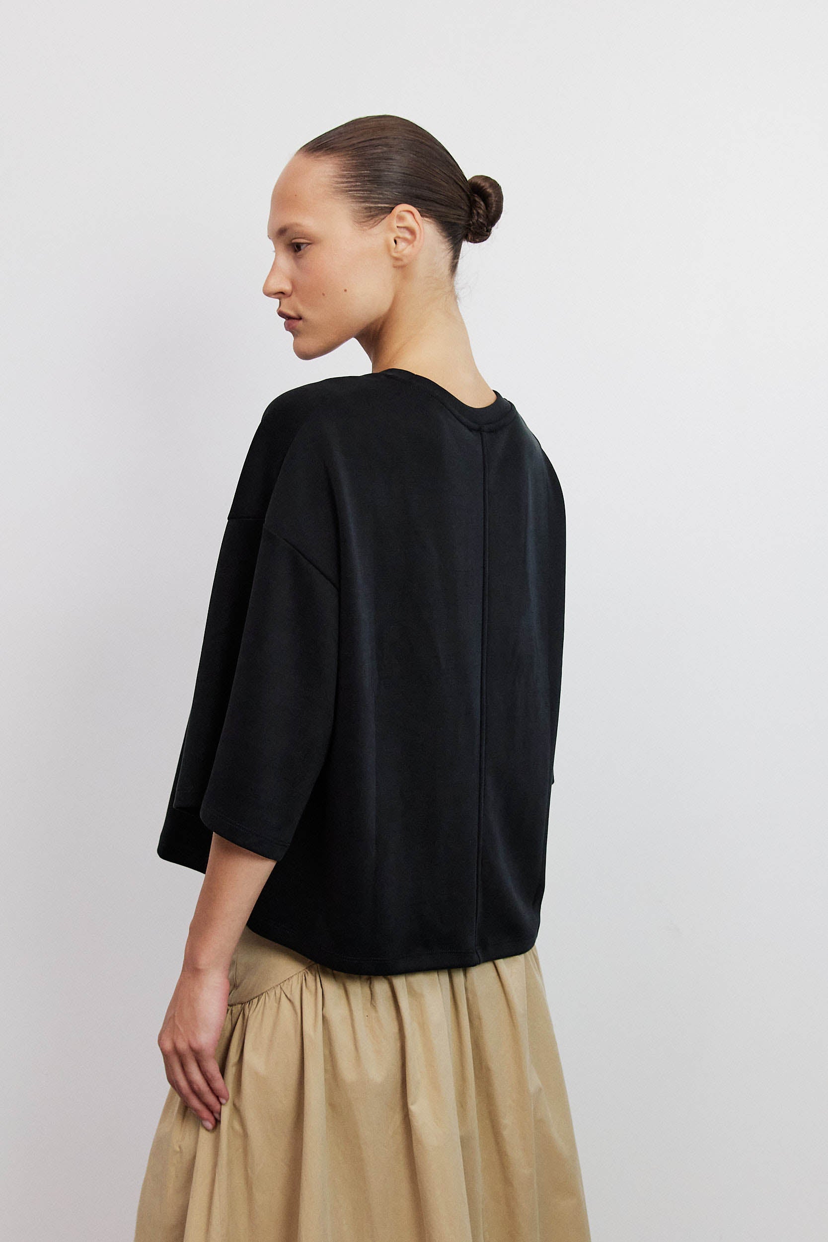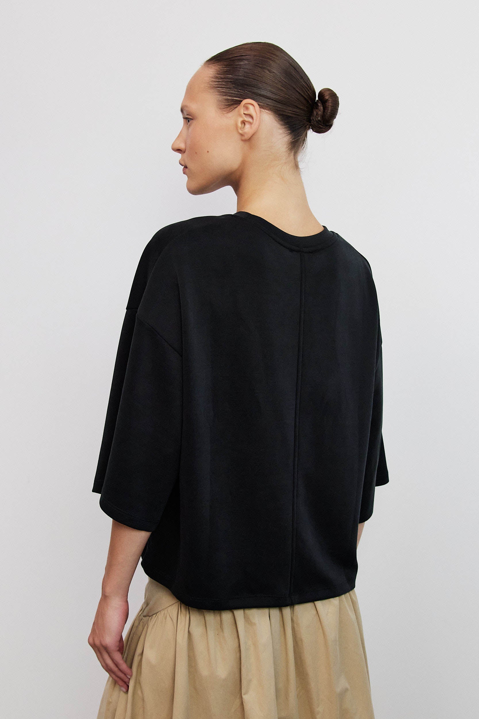 חולצת טי רחבה בגזרת אוברסייז עם שרוולים רחבים באורך ביניים ומפתח צוואר עגול קלאסי. עשויה מבד רך ונעים, מעניקה מראה מינימליסטי, נקי ושיקי לכל לוק.